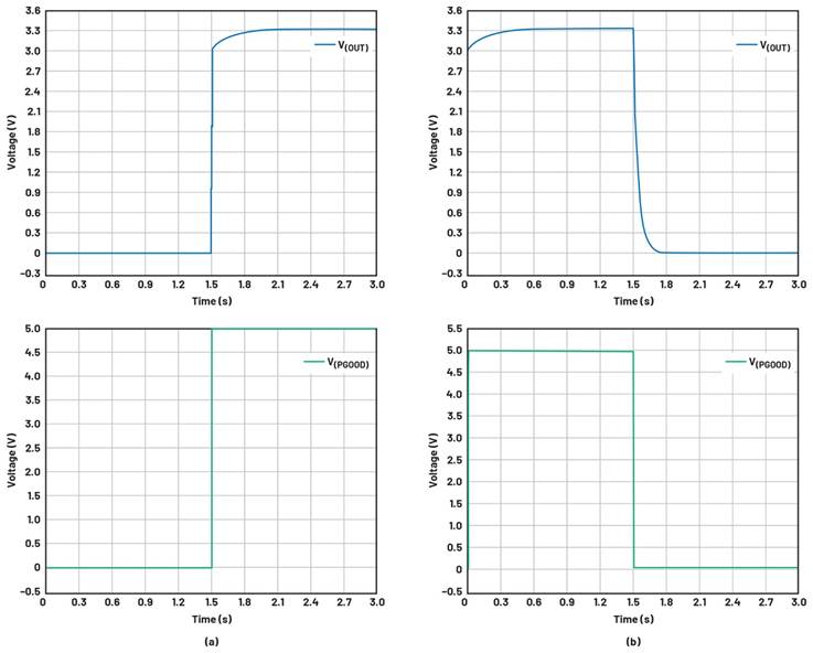 Figure 4. PGOOD signal demonstration (a) upon assertion and (b) deassertion.
