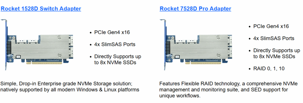 “The synergy between HighPoint’s Gen4 NVMe Switch & RAID Adapters and ICY DOCK’s Mobile Rack solutions delivers the perfect balance of speed, capacity, and integration flexibility,” said May Hwang, Marketing Director at HighPoint Technologies. “The ability to easily manage and swap NVMe drives without compromising performance or reliability is a game-changer for content creators, data scientists, and engineers.”