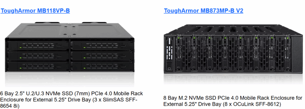 Designed to addresses the growing demand for high-speed data processing and massive storage capacity in data-intensive industries, including AI/ML workloads, media post production, CAD/CAM design, 3D rendering, and HPC, the solutions leverage HighPoint’s cutting-edge Gen4 x16 NVMe Switch adapters with ICY DOCK’s innovative mobile racks to deliver a powerful and flexible storage expansion platform. Ideal for professional workstations and custom-built computing environments, the flexible storage infrastructure enables businesses to integrate fast, hot-swappable enterprise-grade NVMe media into industry-standard 5.25″ or 3.5″ device bays, a feature not typically available with standard workstation configurations.