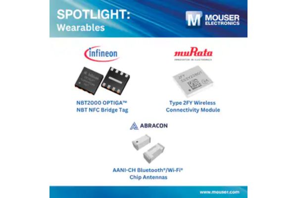 Mouser Electronics, the industry’s leading New Product Introduction (NPI) distributor with the widest selection of semiconductors and electronic components, broadens its portfolio of solutions that meet the unique technical requirements of wearable electronic devices.