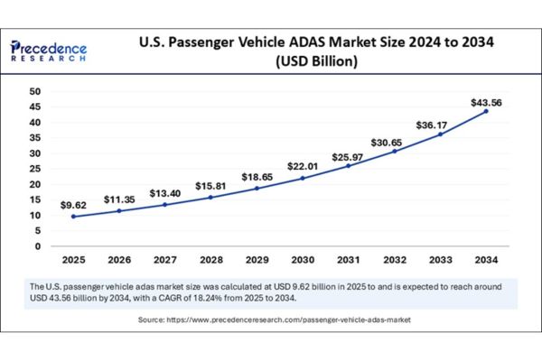 U.S. Passenger Vehicle ADAS Market Size Growth (2025 to 2034)