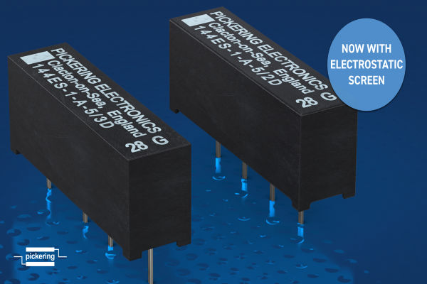 Pickering Electronics, the leader in high-performance reed relays, has upgraded its Series 144 high power reed relays – which switches up to 80 Watts while stacking on a compact 0.25-inch pitch – to include a new variant with an electrostatic shield between the switch and the coil to help minimize noise. Electrostatic screening protects against noise that can otherwise occur between the coil drive and high voltage circuits. This new screening option is in addition to Pickering’s internal mu-metal screen, which helps eliminate problems that would otherwise be experienced due to magnetic interaction when devices are closely stacked.