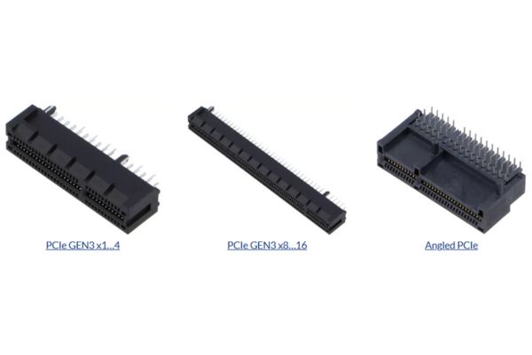 PCIe connectors have contacts arranged with a 1mm pitch. They can carry currents up to 2.4A and handle voltages of 215V AC and 204V DC. An important feature of these sockets is also a wide thermal tolerance range from -55°C to 125°C.