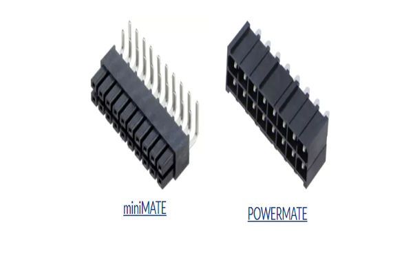 In some cases, pin sockets are used to conduct high currents, primarily in power circuits. For the miniMATE (2.54mm pitch) and POWERMATE (4.19mm) series, maximum currents are 5.3A and 10.3A. The connector design prevents reverse polarity of the connection. Both series are available in angled versions. Their housings include locking latches, protecting the connectors against vibrations and shocks. The sockets can also be used to connect wires.