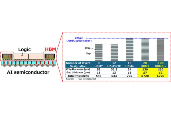 Toray Industries, has announced the development of a new material for the back-end process of semiconductor manufacturing, designed specifically for wafers that are 30 micrometers thick or less. This temporary bonding material is intended for use in advanced applications such as high-bandwidth memory (HBM) for AI chips, NAND flash memory for solid-state drives, and power semiconductors for electric vehicles, hybrid vehicles, and industrial equipment. Toray has started distributing sample units and plans to scale up production at its existing facilities, aiming for full-scale manufacturing by 2028.