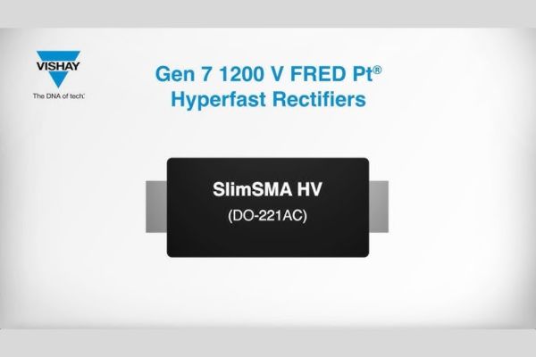 Vishay Intertechnology, expanded its Gen 7 platform of 1200 V FRED Pt Hyperfast rectifiers with four new devices in the eSMP series SlimSMA HV (DO-221AC) package. Optimized for industrial and automotive applications, the 1 A and 2 A rectifiers not only offer the best trade-off between reverse recovery charge (Qrr) and forward voltage drop for devices in their class, but also provide the lowest junction capacitance and recovery time.