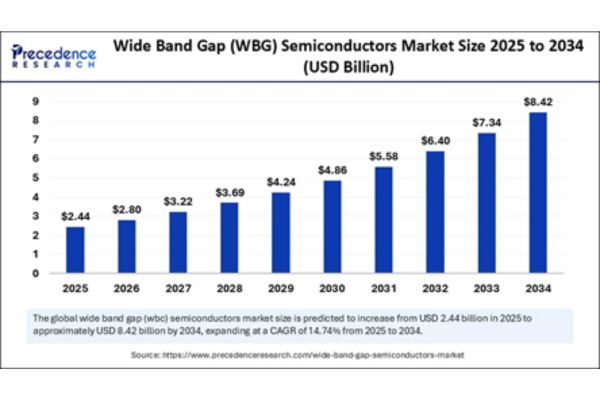 The global wide-bandgap semiconductors market is entering a phase of exponential growth, projected to leap from USD 2.13 billion in 2024 to over USD 8.42 billion by 2034, expanding at a robust compound annual growth rate (CAGR) of 14.74%. This surge is driven by the demand for high-efficiency, high-temperature, and high-voltage applications across electric vehicles (EVs), smart grids, renewable energy systems, 5G telecom networks, aerospace and defense.